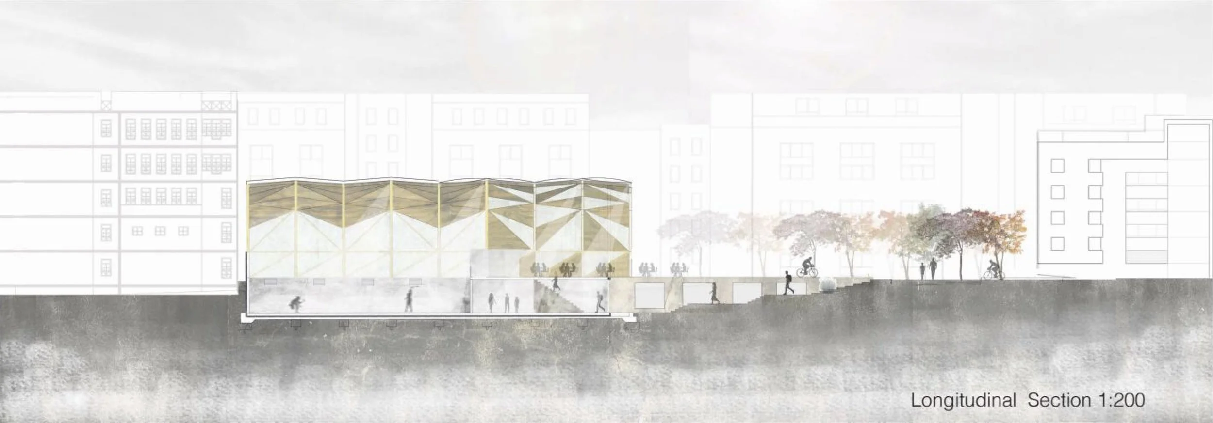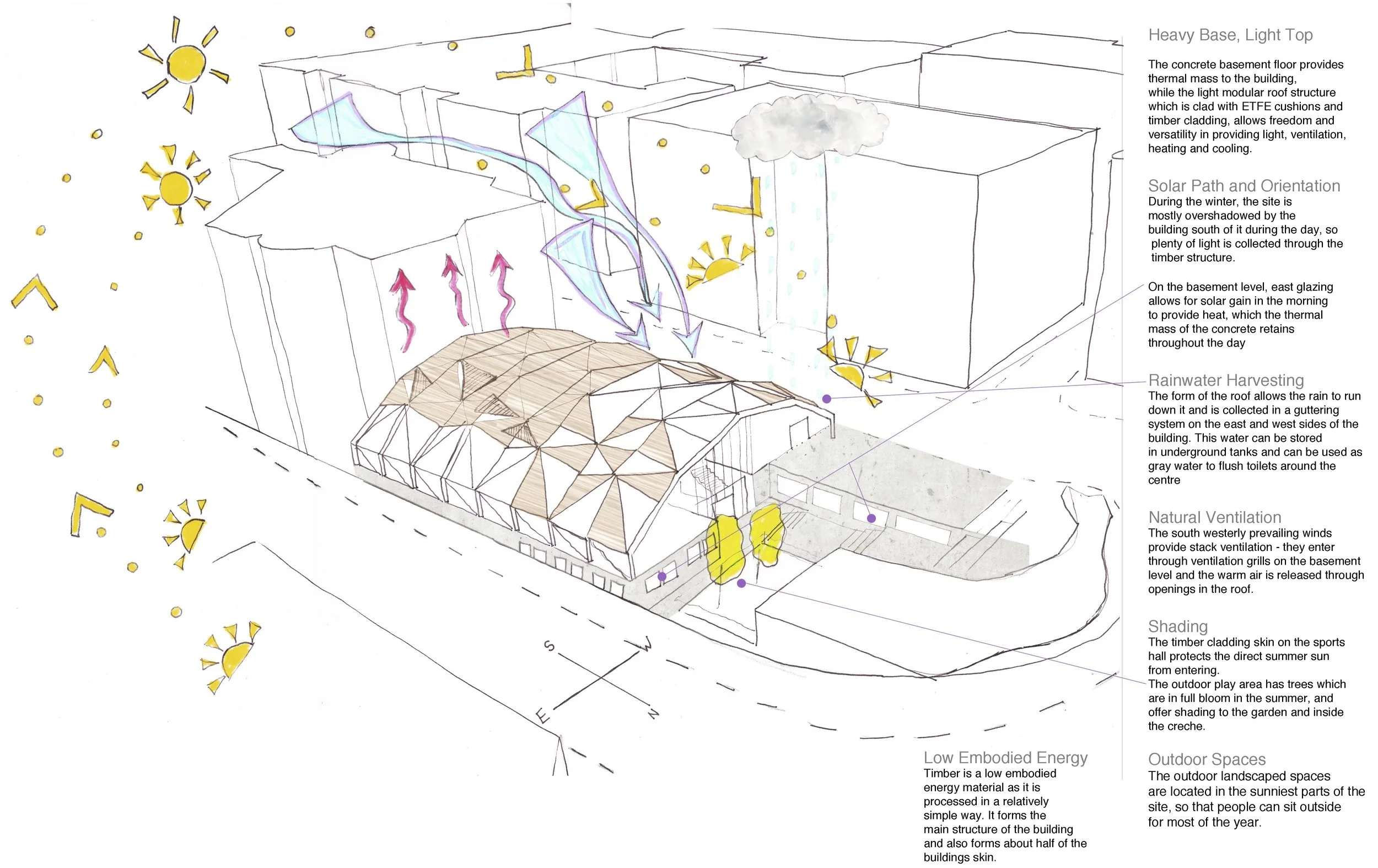 To design a public facility for indoor sport, mainly Badminton and Trampolining, amongst other social and cultural activities, on a slightly sloped, tight site, located in inner city Brighton.